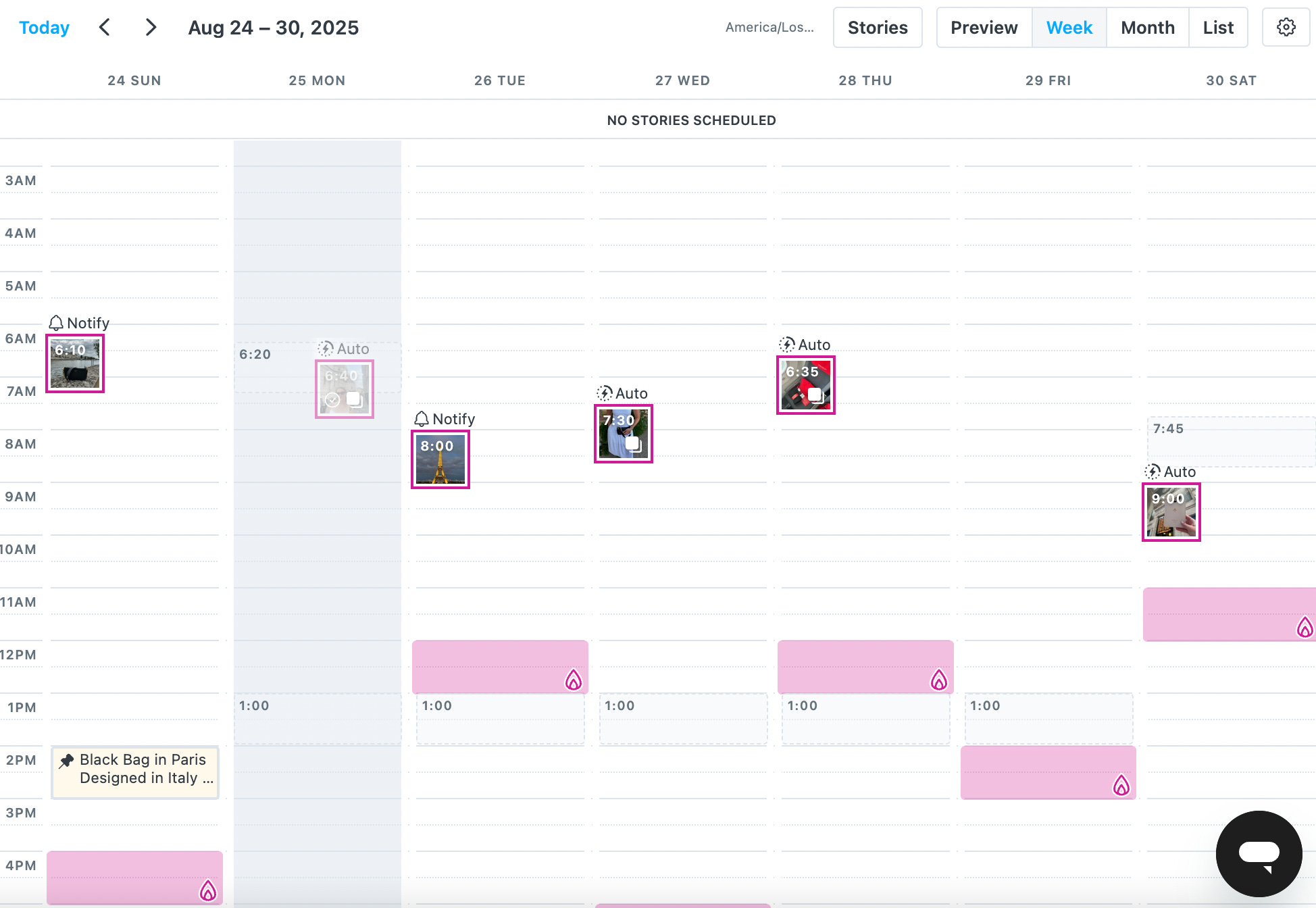 It allows you to schedule posts, preview the entire feed, add locations, link in bios, collaborators, and more. You’re also able to pull tagged content directly into your feed which is a huge plus. If a client desires, they can be invited as a user to preview their feed and make edits or approvals. Clients love it, and honestly, so do I.