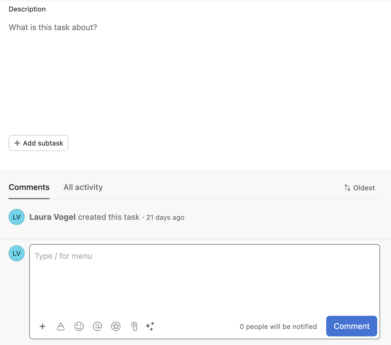 I also attach meeting notes, references, resources, and other documents to tasks. This allows anyone stepping into a task the ability to easily gain context and execute.